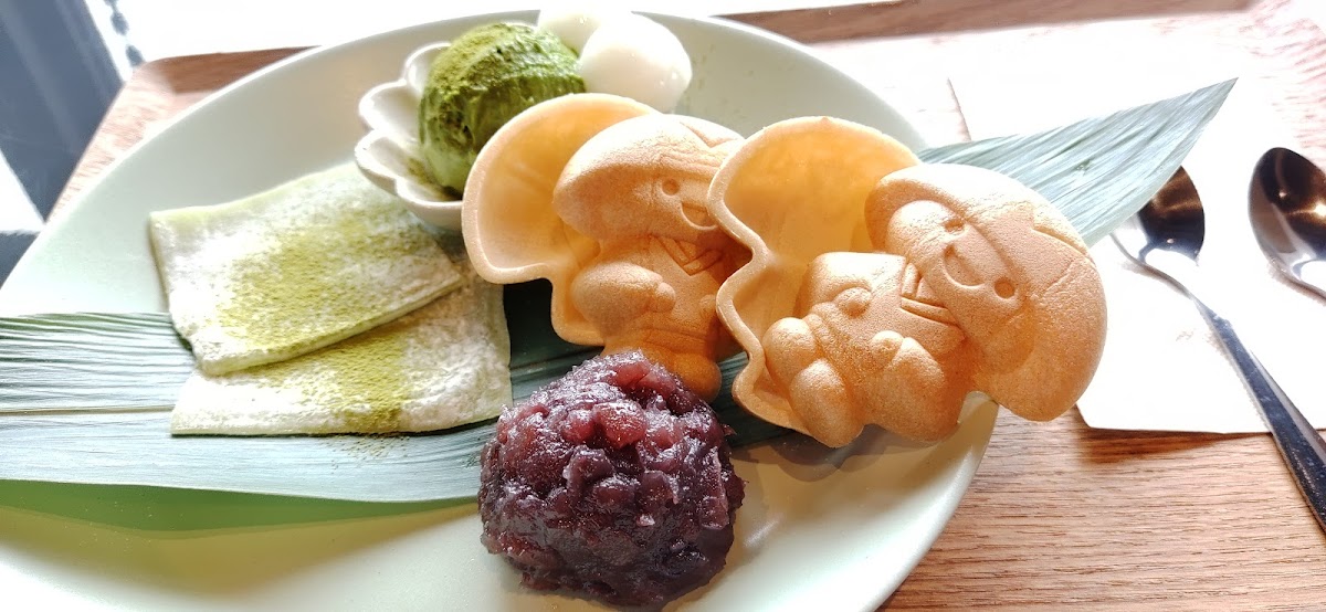 Your dining experience is further elevated with the café’s exquisite goma tofu, served with a luscious drizzle of sweet syrup and a dusting of kinako (roasted soybean flour). This dessert is the perfect way to conclude your meal, emitting a comforting warmth that complements the rich cultural tapestry surrounding you.